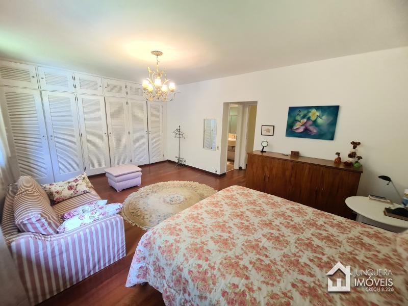 A partir das laterais da sala temos, à esquerda, 2 quartos com um banheiro social e roupeiro e, à direita, mais 3 quartos, sendo uma suíte ampla e banheiro social. Todos os banheiros recentemente reformados e de muito bom gosto!