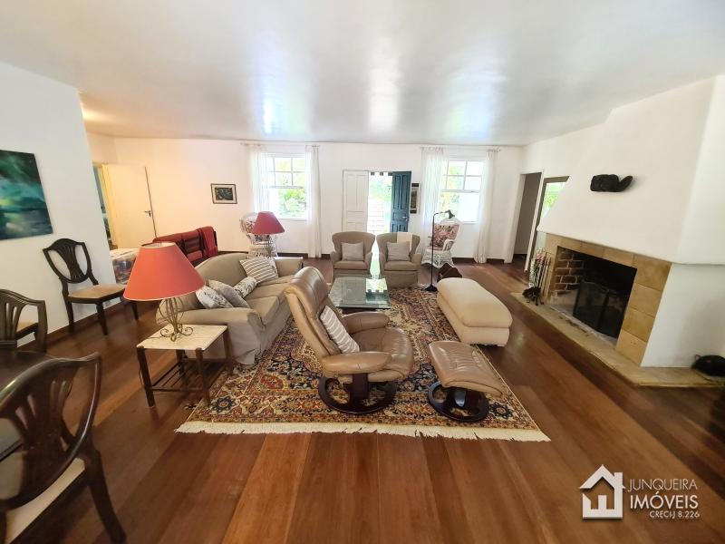Entrando pela porta social, nos deparamos com uma ampla e confortável sala para 3 ambientes, com lareira, proporcionando um ambiente muito agradável para as noites de inverno. A sala ampla e linear conta com mais uma porta seguindo o alinhamento da porta de entrada, levando você até a área da piscina, em um ambiente aberto de total integração.