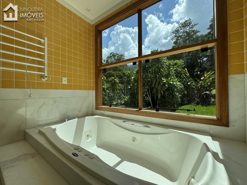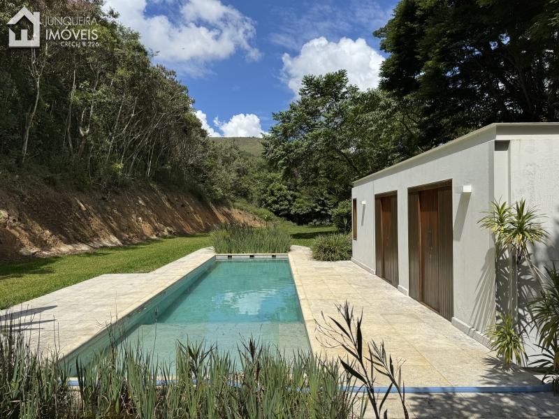 Construída num amplo terreno de 23.000 m2, e área construída de 450 m2, a casa conta com sala em 2 ambientes, cozinha americana, acabamentos de ótimo padrão, marcenaria em madeira maciça e bancadas de mármore, 4 suítes, sendo a master com closet e banheiro com hidro. Linda varanda com vista para as montanhas de Araras e para o entardecer.