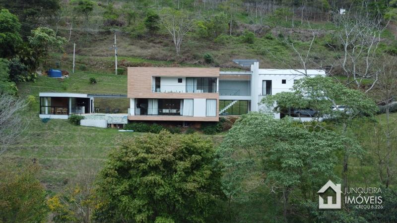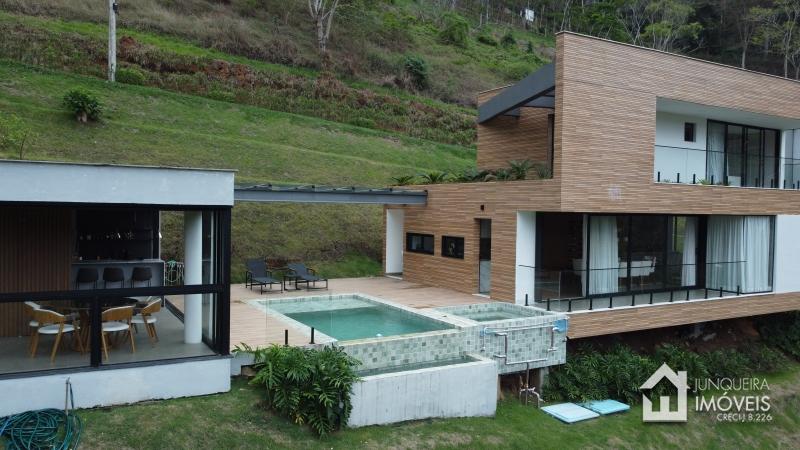 Vendo linda casa com projeto moderno, composta de hall de entrada, quarto de hóspedes, banheiro social, sala de estar com lareira ecológica, sala de jantar e cozinha americana planejada. O salão conta com varanda com linda vista do vale e do condomínio.