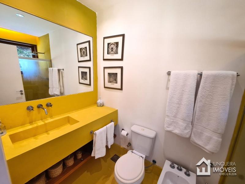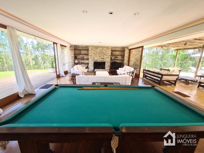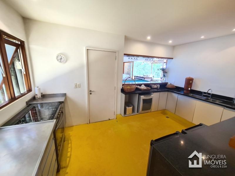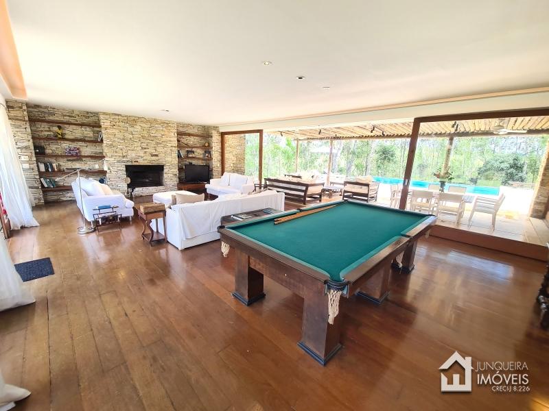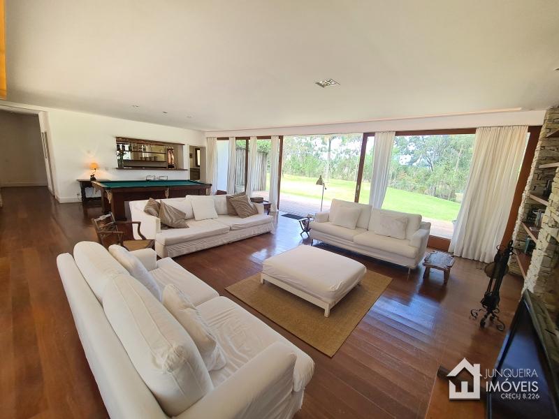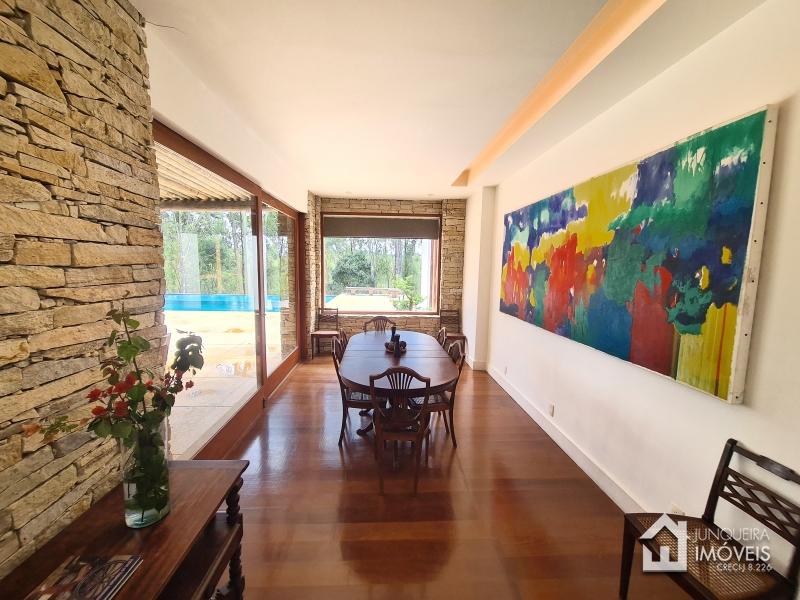 Com uma área total de 470 m2 de construção, a casa conta com ampla sala de estar em 2 ambientes, toda envidraçada para uma plena contemplação da natureza, a sala conta com lareira e cozinha americana, permitindo o pleno convívio. Conta com sala de jantar e lavabo, além de uma bela varanda de frente para a piscina, completando o ambiente social. Ao lado da cozinha, temos despensa, banheiro de serviço e área de serviço.