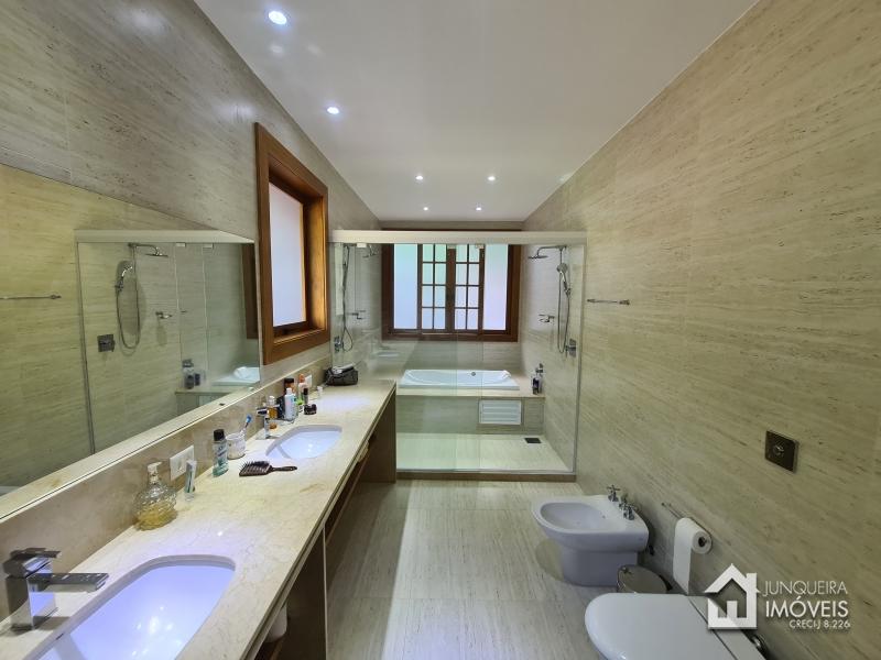 São 3 suítes no piso térreo e mais 4 suítes no segundo andar, sendo a master com closet, banheira de hidromassagem e escritório (todos os quartos com ar-condicionado).