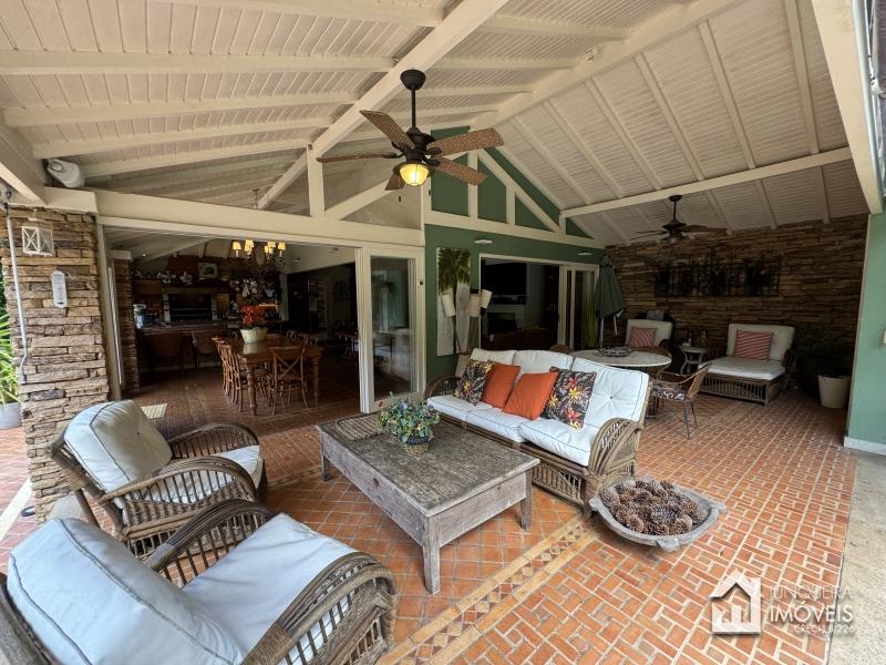 Conta com ampla sala em 3 ambientes com lareira, área gourmet dentro da sala com churrasqueira, forno de pizza e freezer na bancada da cozinha de apoio, sala de jantar e adega. Ampla varanda com acesso para a sala e para a parte externa.
