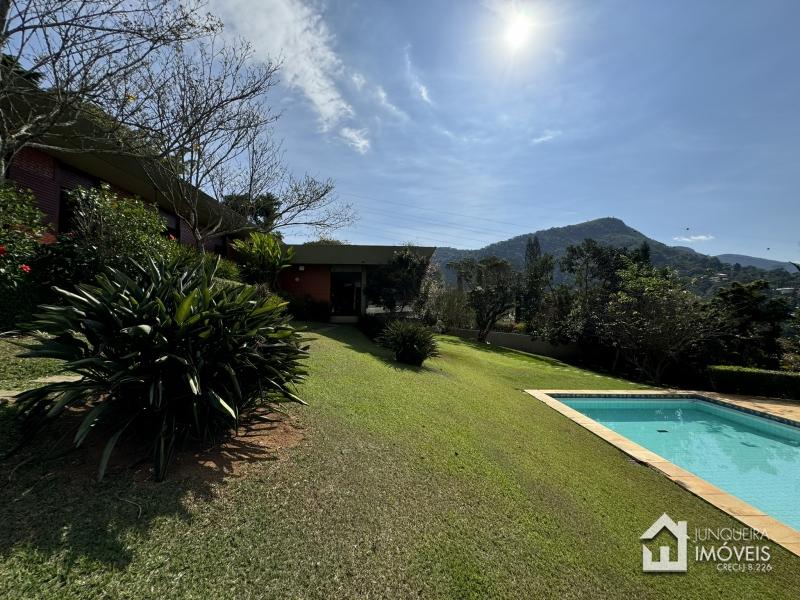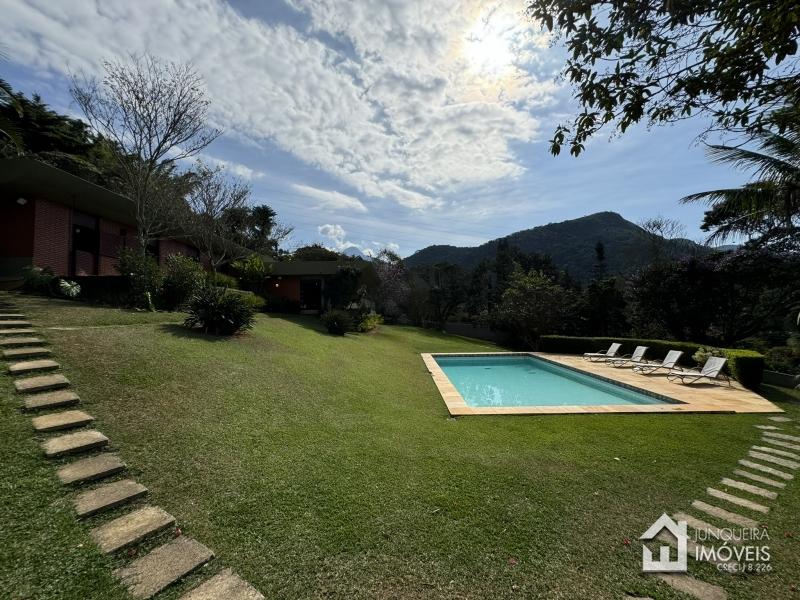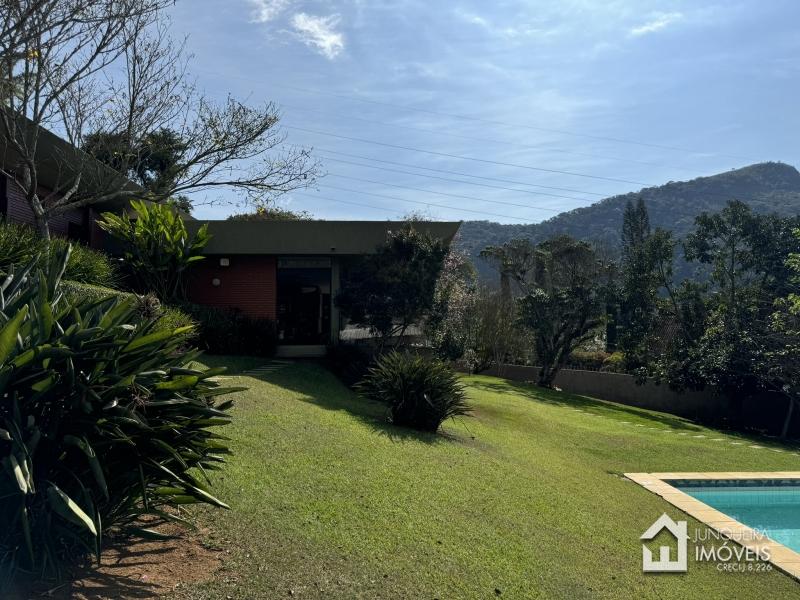 Na parte externa a casa conta com piscina, quadra gramada, anexo com churrasqueira e cozinha de apoio, banheiro e 4 suítes de hóspedes. Casa de caseiro. Garagem para 2 carros + estacionamento para vários veículos.