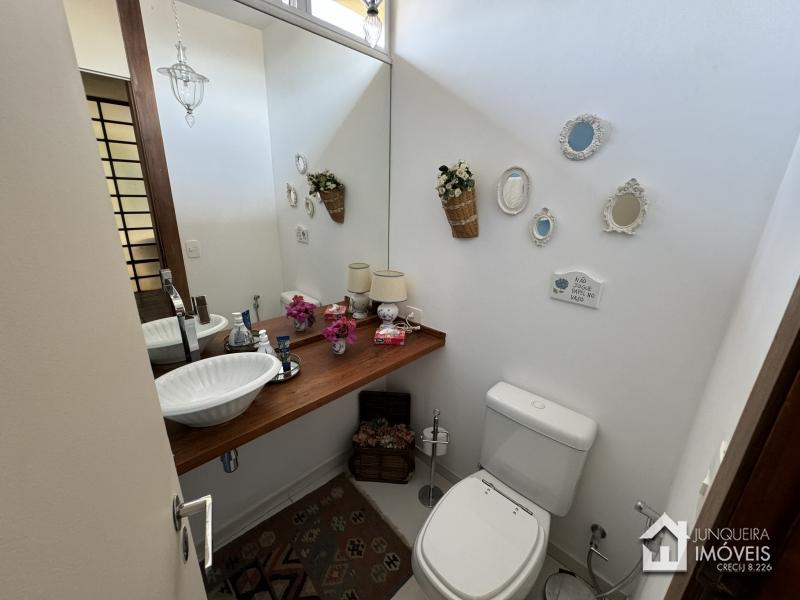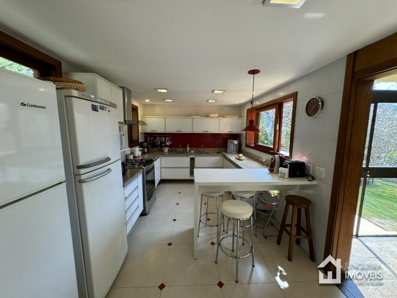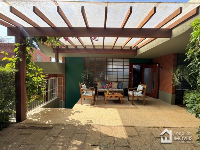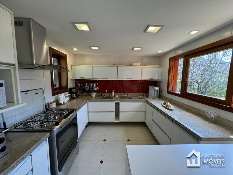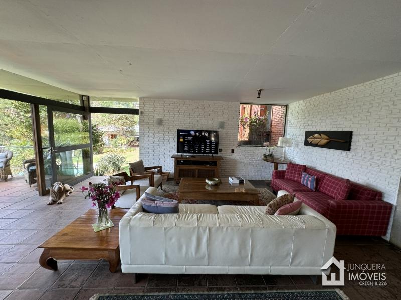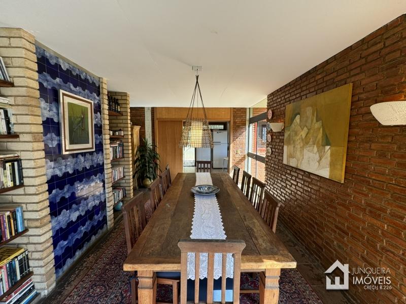 Com uma topografia relativamente plana, o terreno oferece um pleno aproveitamento e conta com belo paisagismo. A casa conta com hall de entrada, lavabo, ampla sala em 2 ambientes com lareira, adega climatizada, sala de jantar e ampla varanda completando o ambiente social. Copa cozinha planejada, área de serviço e dependência completa.