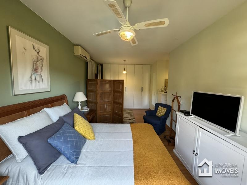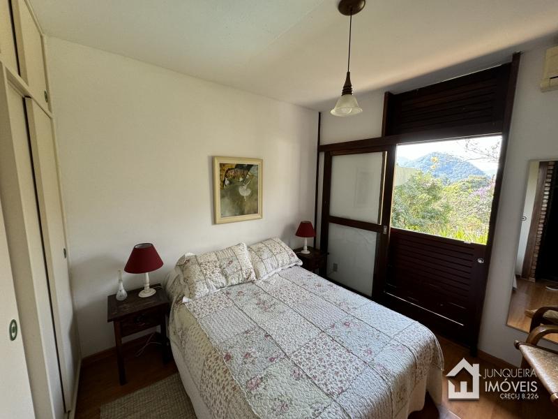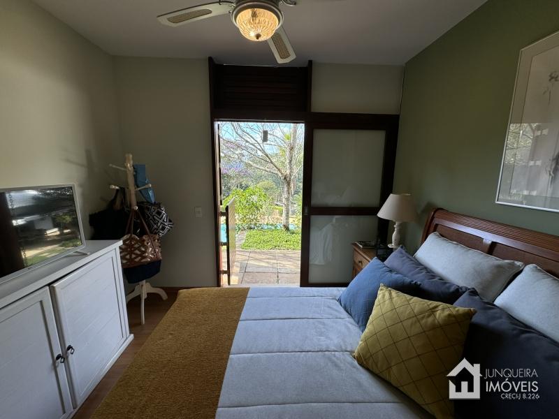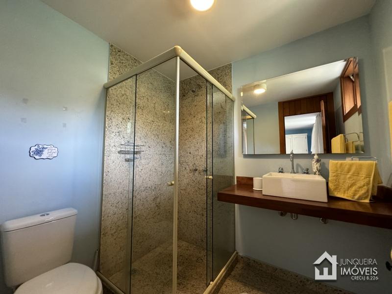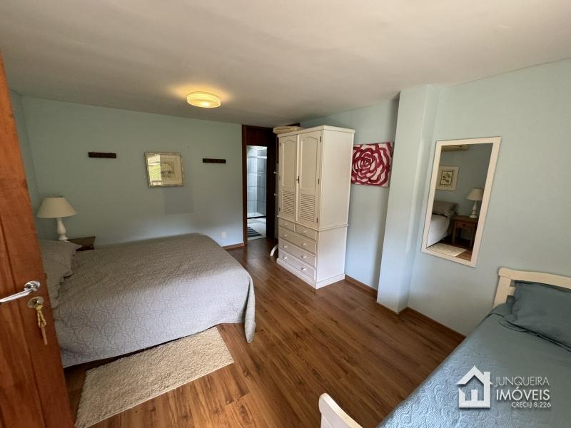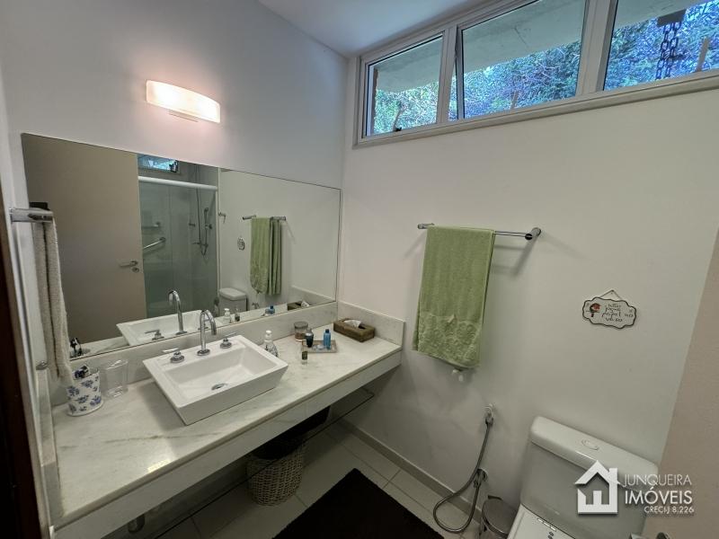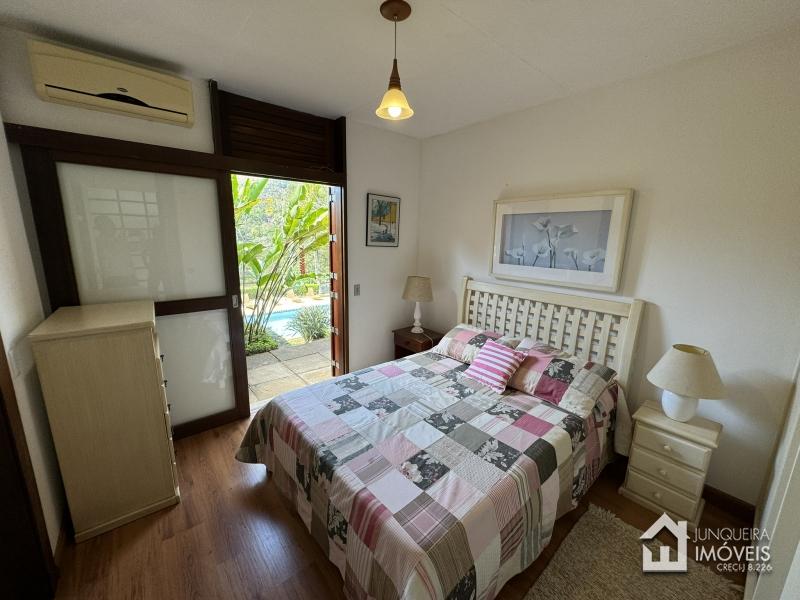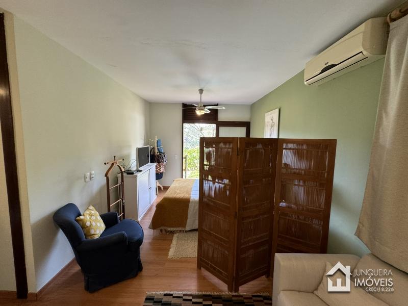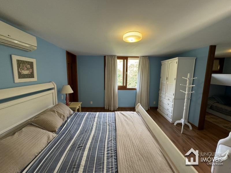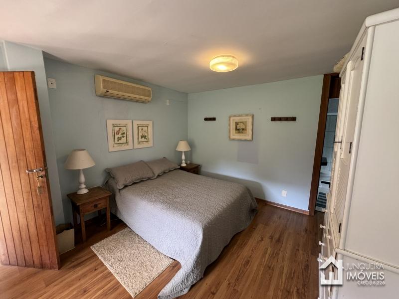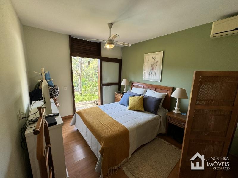 Na área íntima, a casa conta com 3 suítes, todas com armários embutidos e ar condicionado.