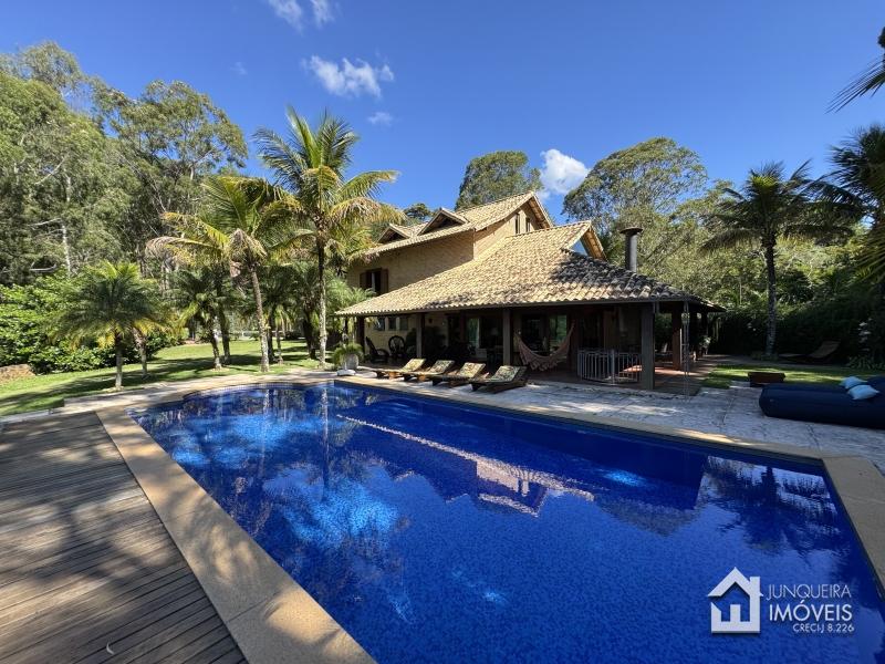 Na área externa, em volta da casa, temos área gourmet com churrasqueira e ao lado área exclusiva com forno de pizza. Na frente da casa uma ampla piscina de frente para a vista das montanhas. No subsolo da piscina temos um ótimo spa com sala de massagem, área para contemplar o pôr do sol, banheiro, ducha e duas saunas uma seca e outra a vapor.