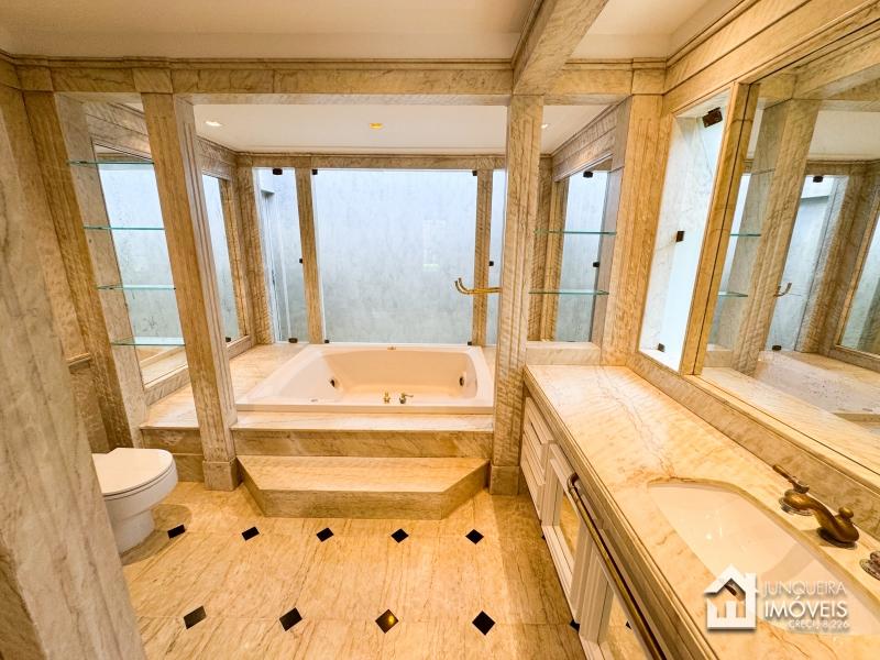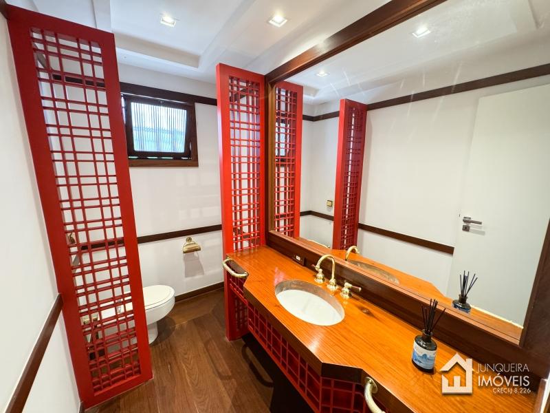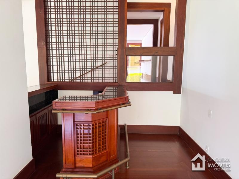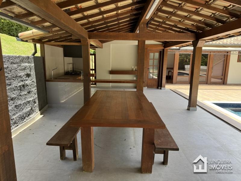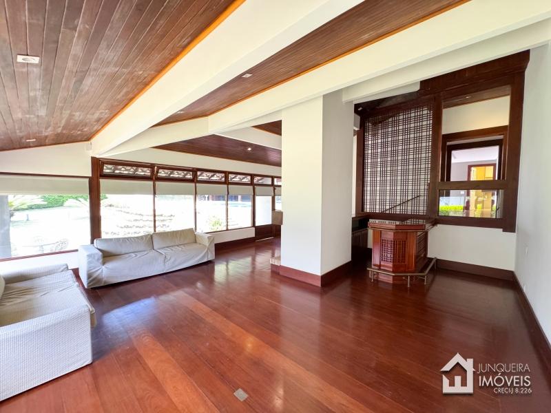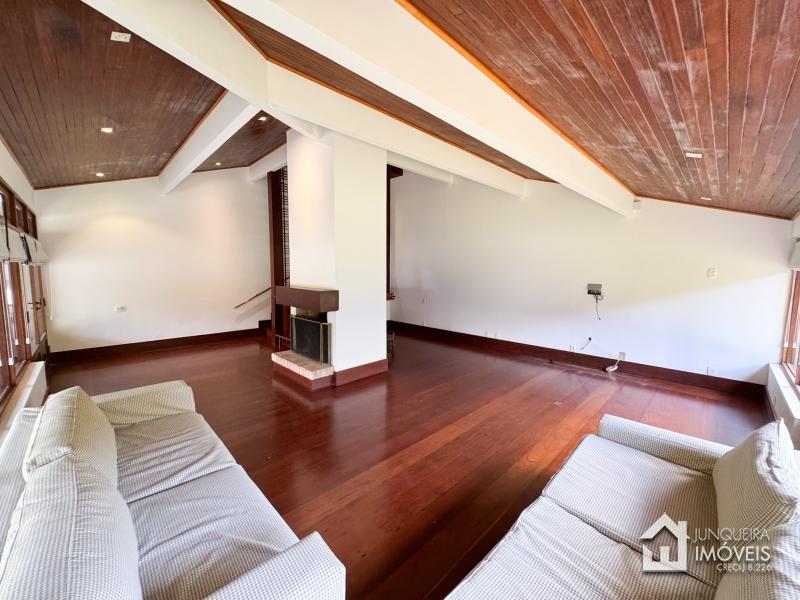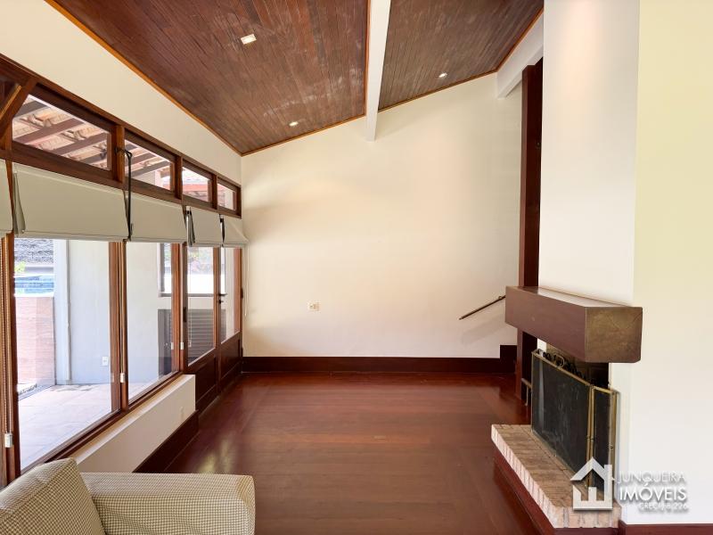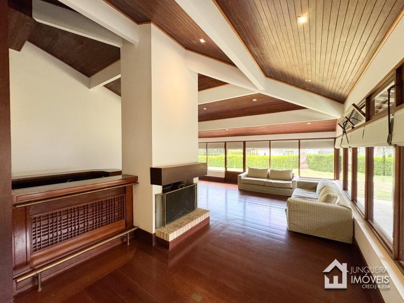 A casa conta com terreno predominantemente plano. Conta com ampla sala de estar em 3 ambientes, com lareira e bar. Sala de jantar e lavabo completam o ambiente social.