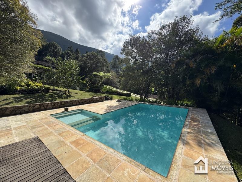 Conta com amplo terreno com árvores frutíferas. Área de lazer com piscina e pavilhão com bar, sauna seca e sala de descanso.