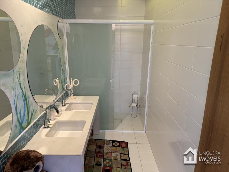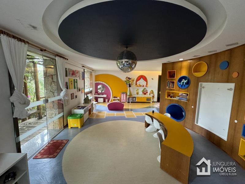 A área de lazer é completa e composta por piscina aquecida, área gourmet com churrasqueira e forno a lenha, spa com sauna seca e hidromassagem, ducha, tudo isso implantado no ambiente térreo. Na parte inferior do terreno a casa ainda possui salão de jogos, campo de futebol e casa na árvore, parquinho e capela.